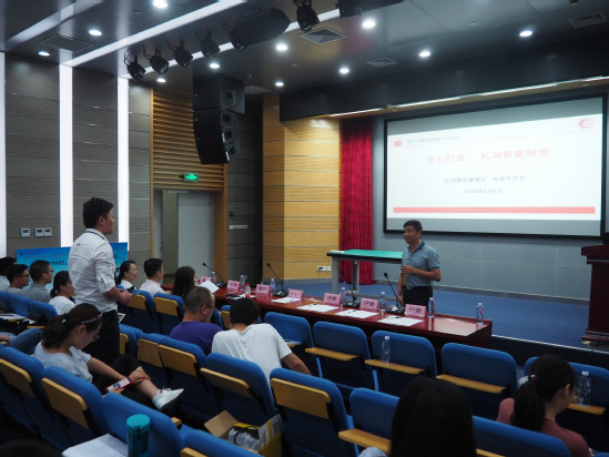 決賽之前,林善平先生給學生們作了題為“匠心打造,虹潤智能制造”的講座,林先生圍繞虹潤集團傳承的“工匠精神”和“傳統(tǒng)文化”,向學生們講述了虹潤如何通過不斷尋求發(fā)展道路、不斷發(fā)現(xiàn)問題解決問題,從“中國最好”走向“世界最好”的過程。講座后同學們就科技創(chuàng)新、大學生創(chuàng)業(yè)等感興趣的方面向林先生提問,林先生一一做了耐心解答,現(xiàn)場氣氛活躍。