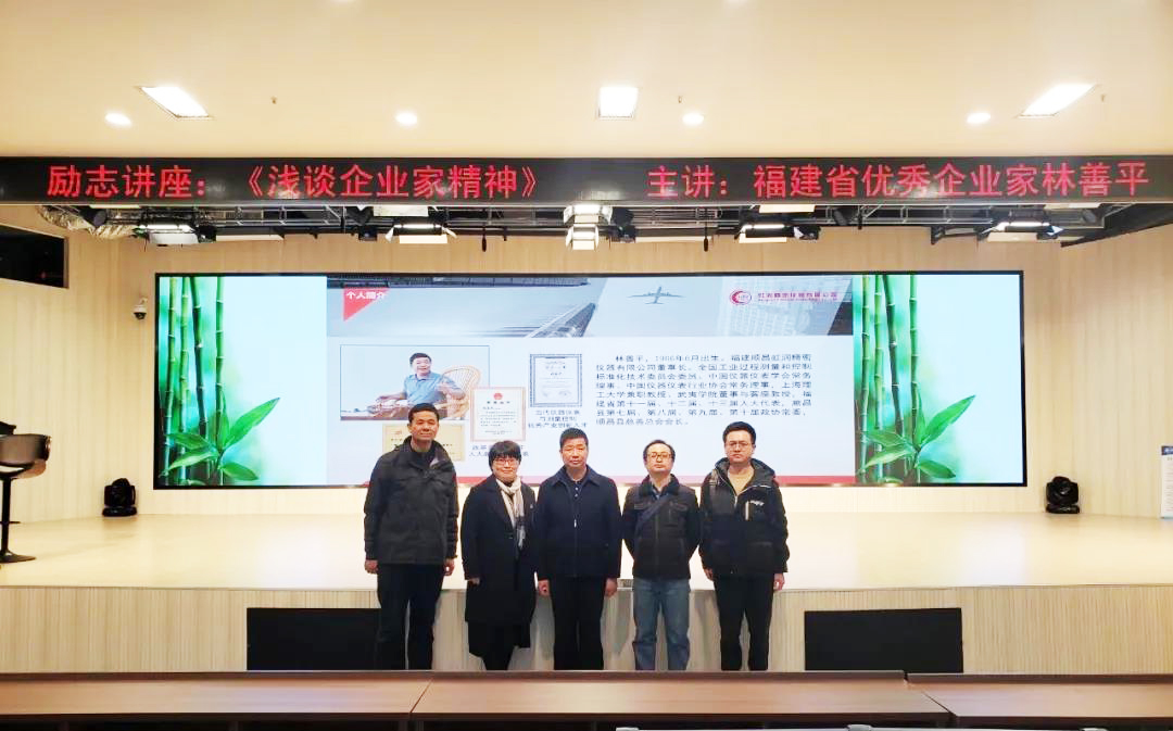 2020年12月28日下午4時(shí)30分,福建順昌虹潤(rùn)精密儀器有限公司董事長(zhǎng)、全國(guó)工業(yè)過程測(cè)量和控制標(biāo)準(zhǔn)化技術(shù)委員會(huì)委員、中國(guó)儀器儀表學(xué)會(huì)常務(wù)理事、中國(guó)儀器儀表行業(yè)協(xié)會(huì)常務(wù)理事,上海理工大學(xué)兼職教授、武夷學(xué)院董事與客座教授,福建省第十一屆、十二屆、十三屆人大代表林善平先生應(yīng)建陽(yáng)一中邀請(qǐng),在該校圖書館報(bào)告廳給全體高二師生800余人作《淺談企業(yè)家精神》專題講座。講座由福建省人大代表、黃景青校長(zhǎng)主持。