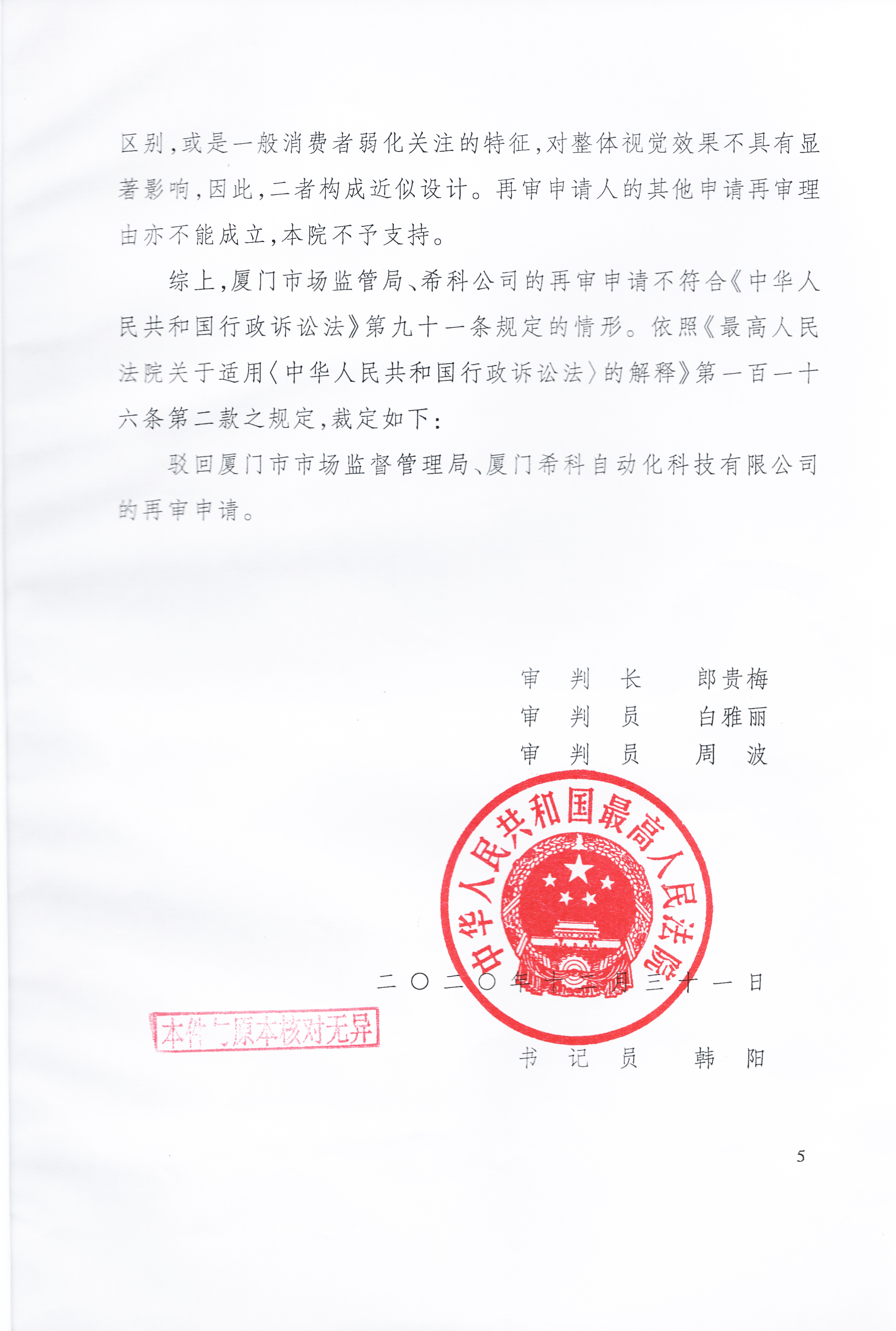 該案于2019年7月30日由福建省高級(jí)人民法院終審判定廈門??乒厩址负鐫櫣緦@麢?quán)。??乒静环?019年10月31日又向最高人民法院提出再審,最高人民法院在經(jīng)過長期的嚴(yán)格調(diào)查審理后,于近期最終判定廈門??乒厩謾?quán)并駁回其上訴請求。