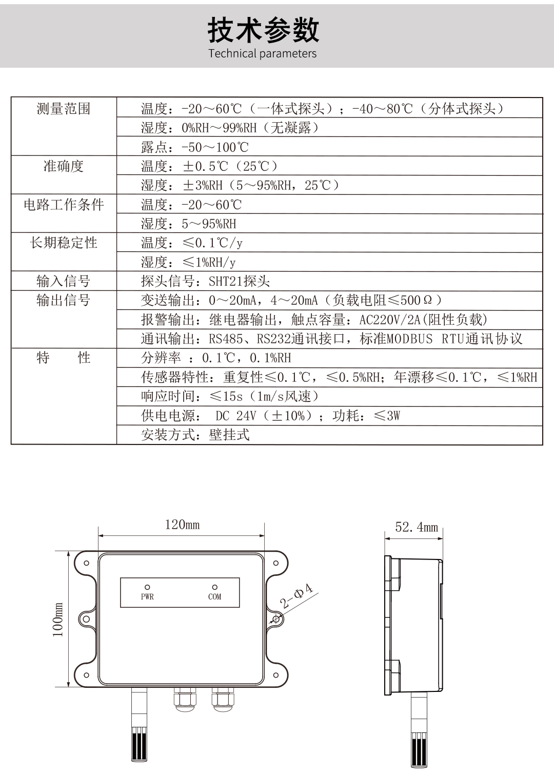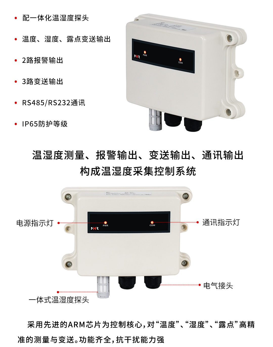 NHR-WS20系列一體化溫濕度變送器電路采用進(jìn)口微處理器芯片、進(jìn)口高精度溫濕度傳感器,確保溫濕度變送器優(yōu)異的可靠性。它具有精度高、穩(wěn)定性強(qiáng)、響應(yīng)速度快等特點(diǎn),可同時(shí)對(duì)被測(cè)環(huán)境的溫度、濕度進(jìn)行測(cè)量和控制。適用于通訊機(jī)房、辦公室、醫(yī)院、檔案館、博物館、賓館、樓宇自控等場(chǎng)所的溫濕度測(cè)量。