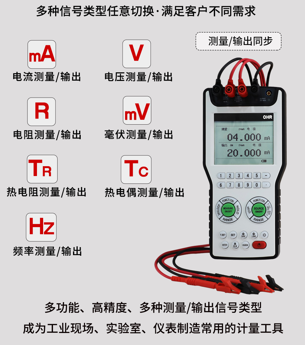 OHR-A00過(guò)程校驗(yàn)儀是一種多功能、高精度的便攜式儀器,可用于校準(zhǔn)、測(cè)試工業(yè)過(guò)程裝置及各種電氣設(shè)備,支持電流、電壓、電阻、頻率、熱電偶、熱電阻等多種信號(hào)類(lèi)型,最高精度可達(dá)0.01%F.S,是工業(yè)現(xiàn)場(chǎng)、實(shí)驗(yàn)室以及各類(lèi)儀表制造商必備的計(jì)量測(cè)試工具。