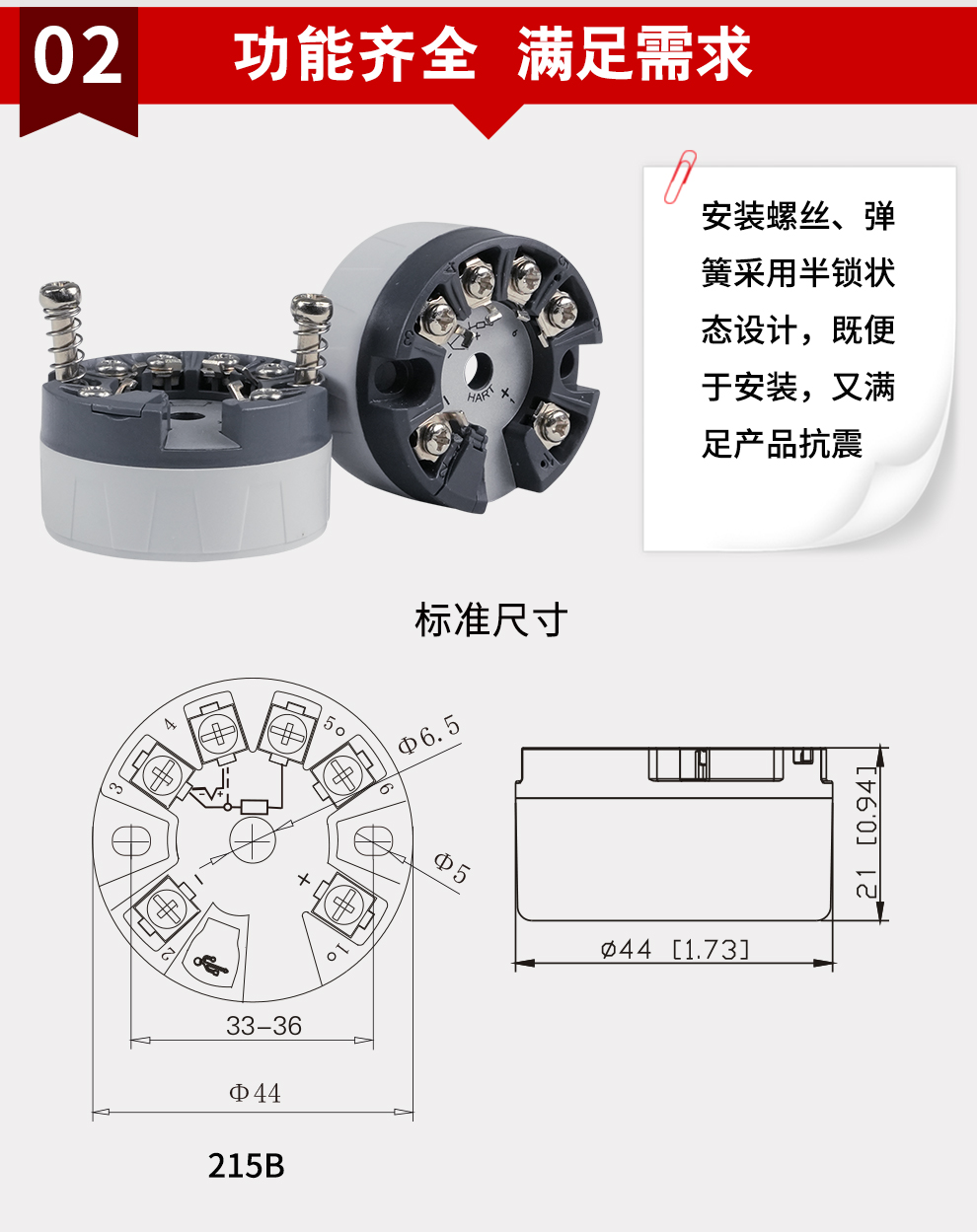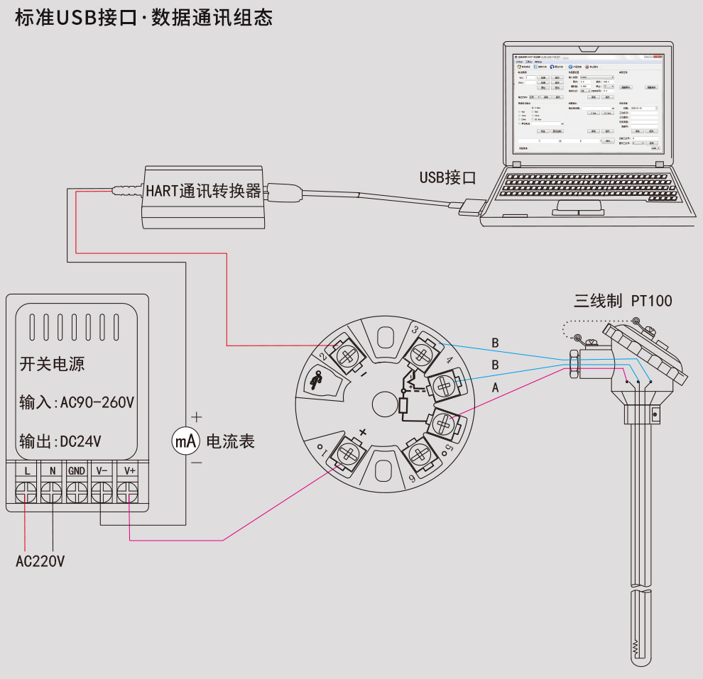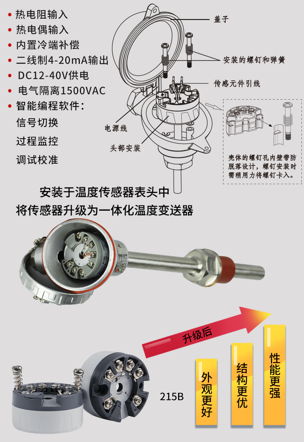HART智能溫度變送器(圓卡),用于熱電阻(RTD)、熱電偶(TC)信號輸入,二線制4~20mA模擬輸出,通過HART協(xié)議組態(tài),安裝于傳感器內部(Form B)。