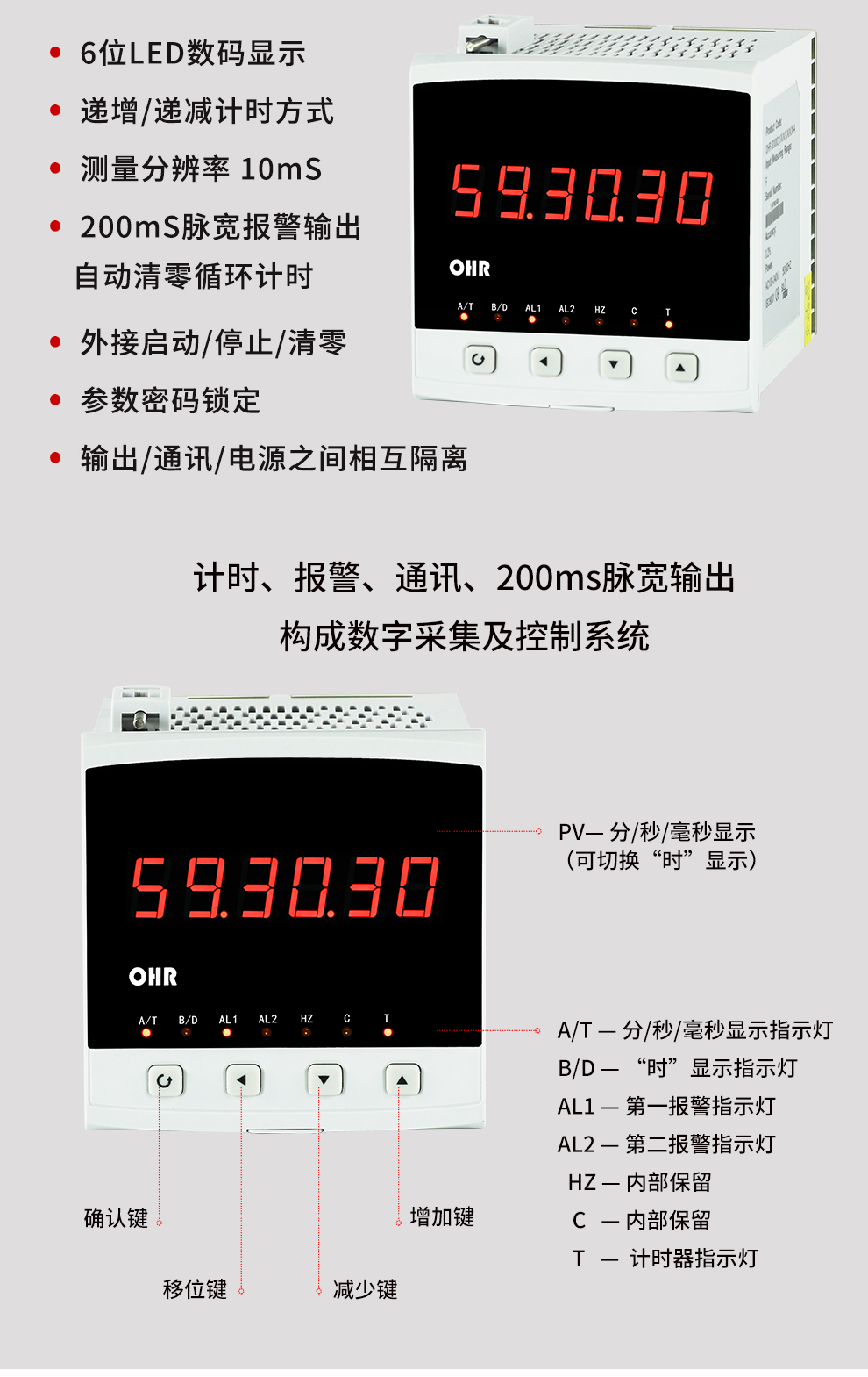 OHR-B200系列計時器采用全自動貼片封裝工藝,具有很強的抗干擾能力,并具有多種輸出功能和控制功能,廣泛運用于電力、石化、冶金、輕工、制藥、航空等諸多領域。