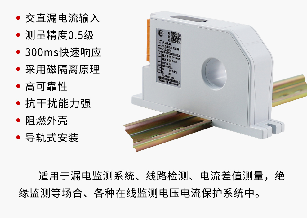 OHR-ES30系列交流/直流漏電流變送器對電網和電路中的交直流電流信號進行實時測量,具有高精度、高隔離、 低漂移、低功耗、體積小、響應快、抗干擾能力強等特點。本產品采用標準DIN35mm導軌安裝,端子接線,安裝方 便,適用于測量漏電監(jiān)測系統(tǒng),線路檢測,電流差值測量,絕緣監(jiān)測等場合。