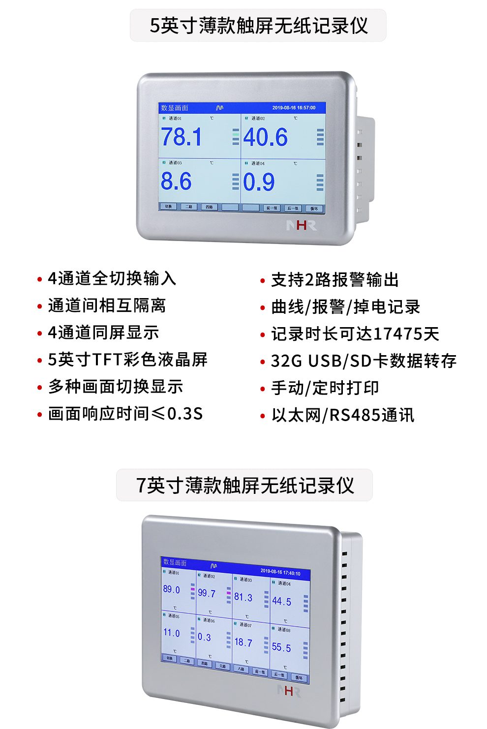 NHR-T系列觸摸超薄無紙記錄儀
