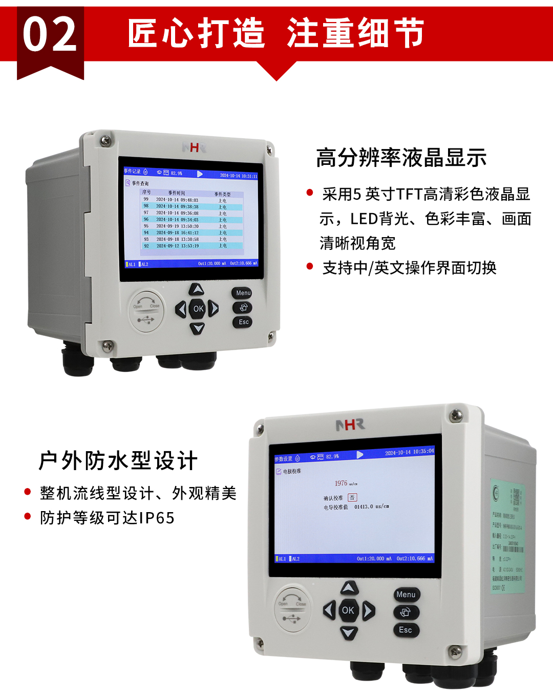 NHR-EC80系列電導率記錄儀是一款在線化學分析記錄控制器,可對工業(yè)用水的電導率/TDS值進行連續(xù)測量和控制。記錄儀具有兩路模擬信號輸出、兩路繼電器報警輸出以及RS485/以太網通訊輸出等功能,方便用戶進行數據傳輸和監(jiān)控。具有強大的顯示功能,包括實時曲線顯示、歷史曲線追憶、事件記錄、報警記錄、文件列表等顯示畫面,使用戶能夠清晰地了解系統(tǒng)運行情況。