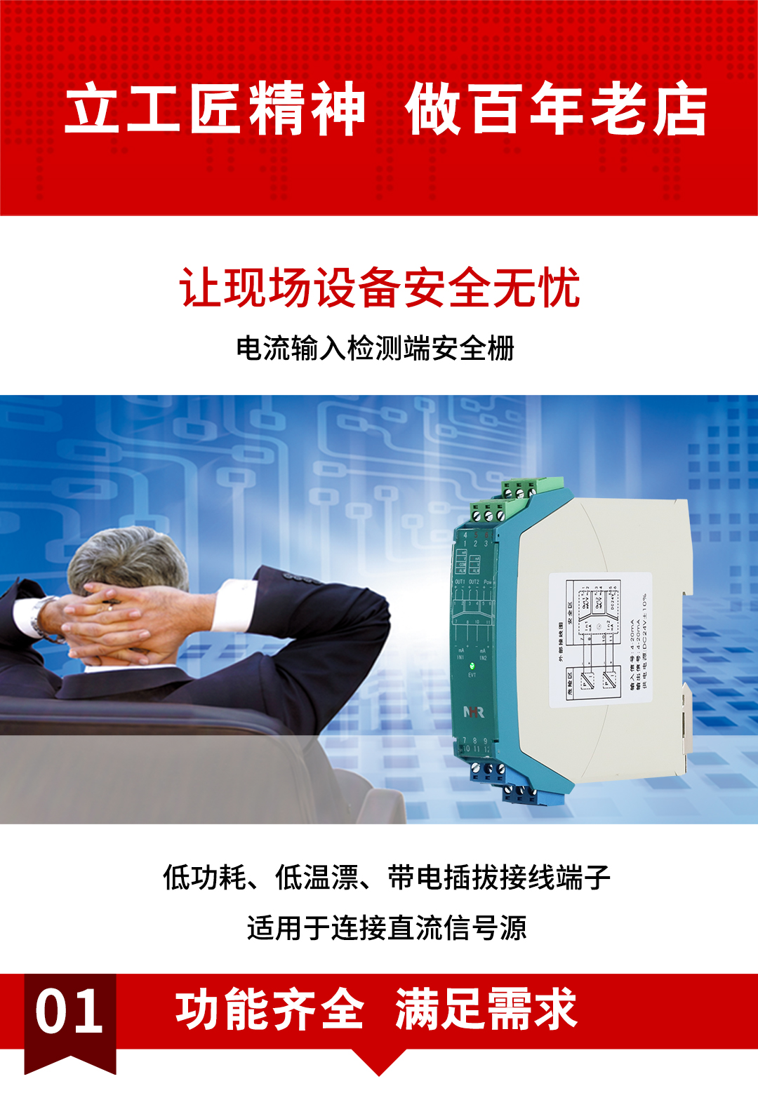 NHR-A31系列電流輸入檢測端隔離柵將來自危險區(qū)的電流信號轉(zhuǎn)換成電壓、電流、RS485信號或開關(guān)量信號,從危險區(qū)隔離傳送到安全區(qū),該產(chǎn)品需獨立供電,輸入/輸出/電源三隔離??捎迷陔娏餍盘栞敵鲈O(shè)備。