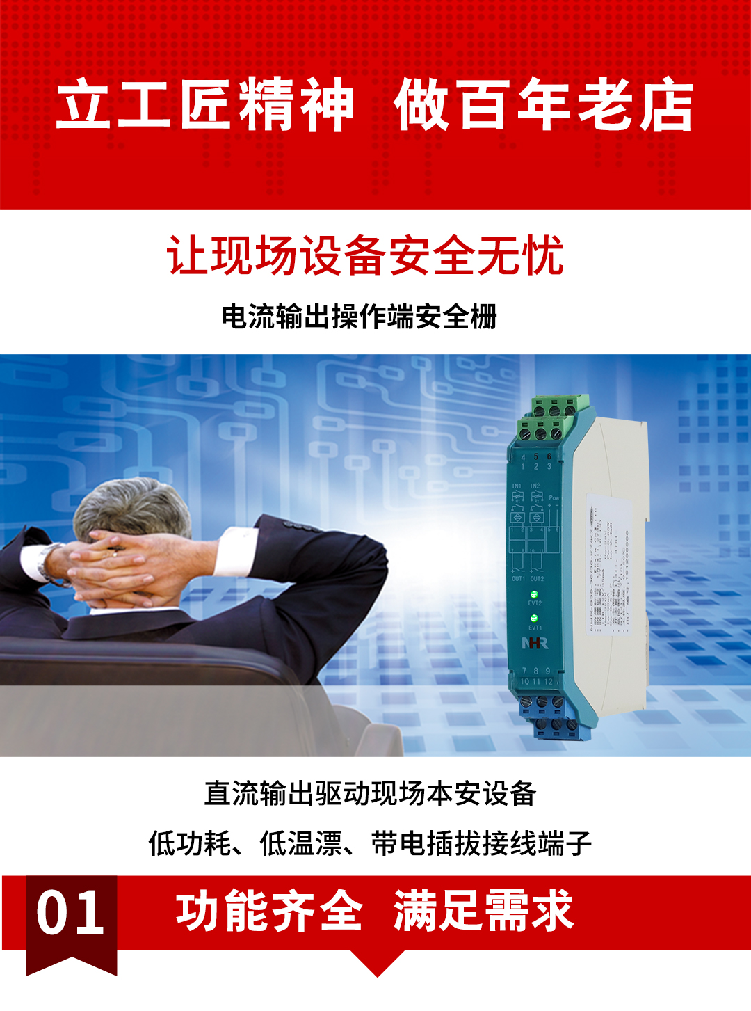 NHR-B31系列電壓/電流輸出操作端隔離柵將安全區(qū)來自DCS或PLC等電氣設備的信號經過安全柵(保護)隔離以后再輸出線性的直流電壓/電流信號,以此來驅動現(xiàn)場的執(zhí)行機構,該產品需獨立供電,輸入/輸出/電源三隔離。
